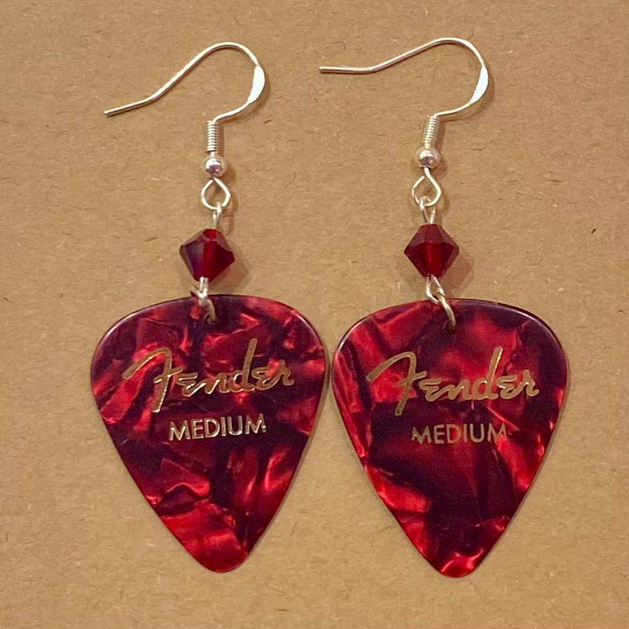 Jewelry Guitar Pick Earrings Red